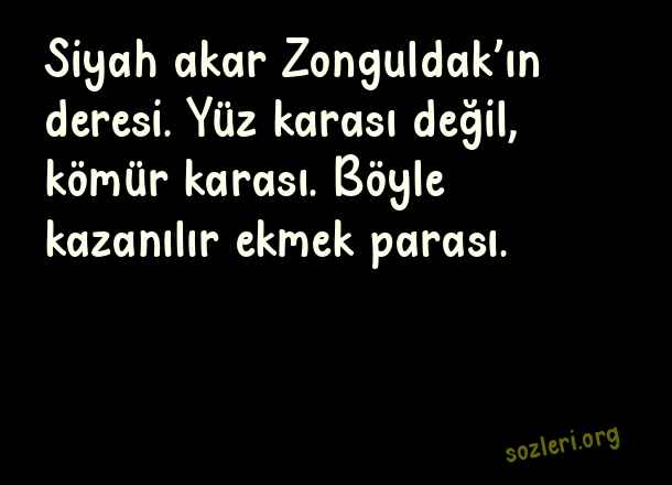 Siyah akar Zonguldak’ın deresi. Yüz karası değil, kömür karası. Böyle kazanılır ekmek parası. ( Orhan Veli Kanık )