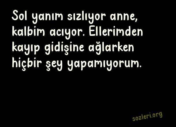 Sol yanım sızlıyor anne, kalbim acıyor. Ellerimden kayıp gidişine ağlarken hiçbir şey yapamıyorum. ( Sol Yanım )