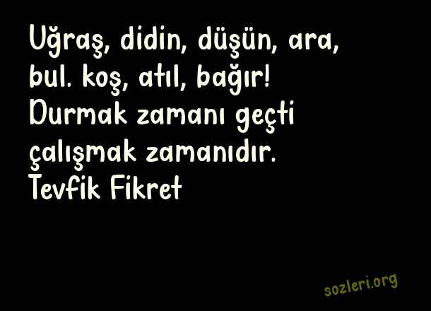 Uğraş, didin, düşün, ara, bul. koş, atıl, bağır! Durmak zamanı geçti çalışmak zamanıdır. Tevfik Fikret ( Çalışmanın Önemi )