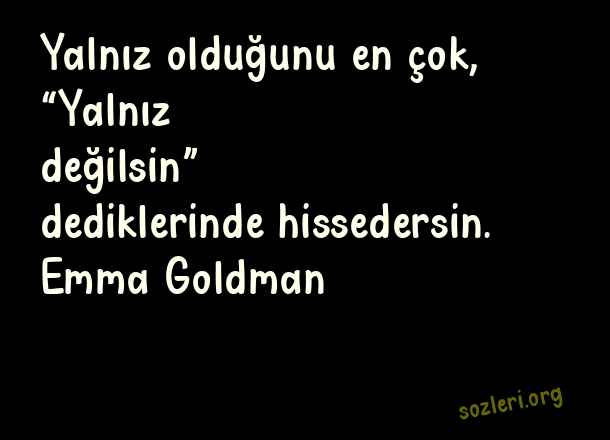 Yalnız olduğunu en çok, “Yalnız değilsin” dediklerinde hissedersin. Emma Goldman ( Dünyanın En Güzel )