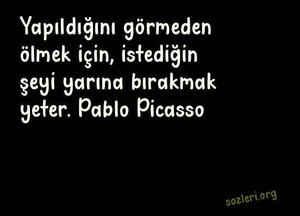 Yapıldığını görmeden ölmek için, istediğin şeyi yarına bırakman yeter. Pablo Picasso