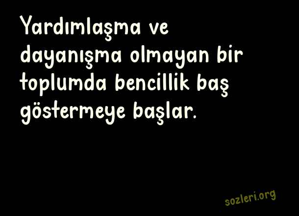 Yardımlaşma ve dayanışma olmayan bir toplumda bencillik baş göstermeye başlar. ( Dayanışma )