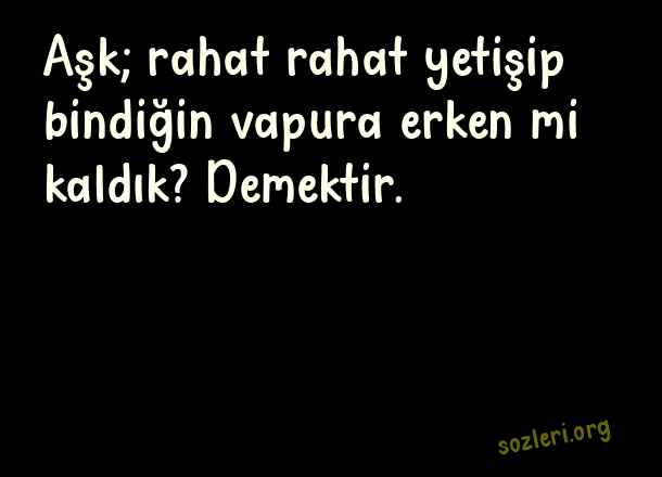 Aşk; rahat rahat - Anlamlı Aşk Sözleri .. Aşk; rahat rahat yetişip bindiğin vapura erken mi kaldık? Demektir. ( Anlamlı Aşk )