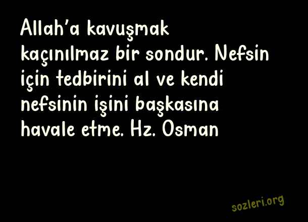 Allah’a kavuşmak kaçınılmaz bir sondur. Nefsin için tedbirini al ve kendi nefsinin işini başkasına havale etme. Hz. Osman ( Anlamlı Güzel Dini Sözler )