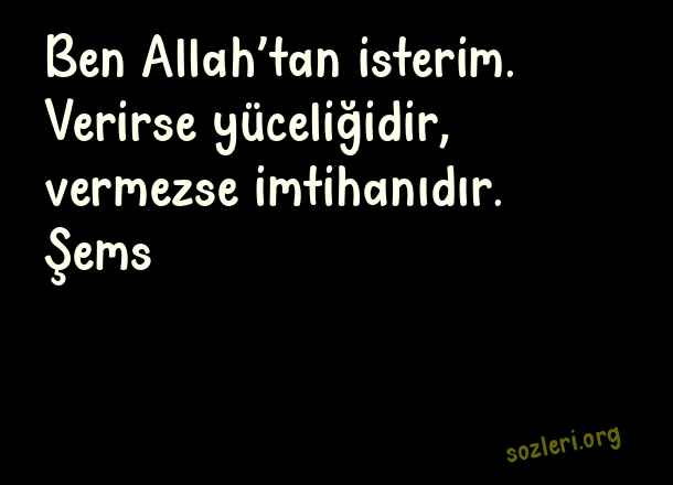 Ben Allah’tan isterim. Verirse yüceliğidir, vermezse imtihanıdır. Şems ( Anlamlı Güzel Dini Sözler )