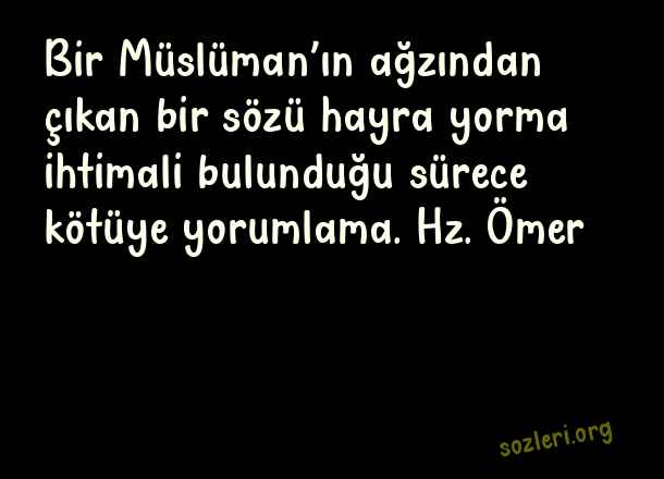 Bir Müslüman’ın ağzından çıkan bir sözü hayra yorma ihtimali bulunduğu sürece kötüye yorumlama. Hz. Ömer ( Anlamlı Güzel Dini Sözler )