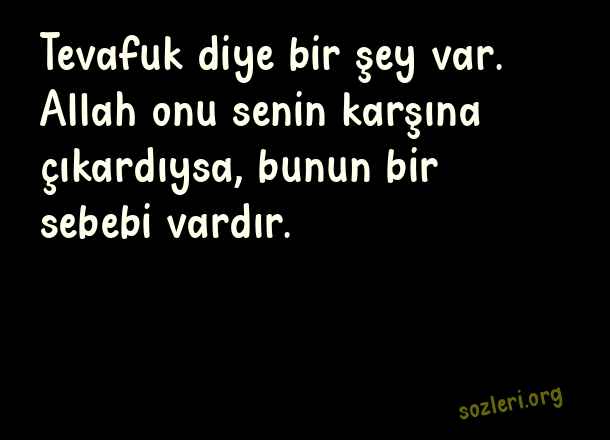 Tevafuk diye bir şey var. Allah onu senin karşına çıkardıysa, bunun bir sebebi vardır. ( Anlamlı Güzel Dini Sözler )