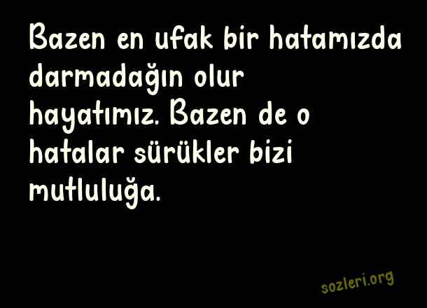 Bazen en ufak bir hatamızda darmadağın olur hayatımız. Bazen de o hatalar sürükler bizi mutluluğa. ( Anlamlı Sözler 2023 )