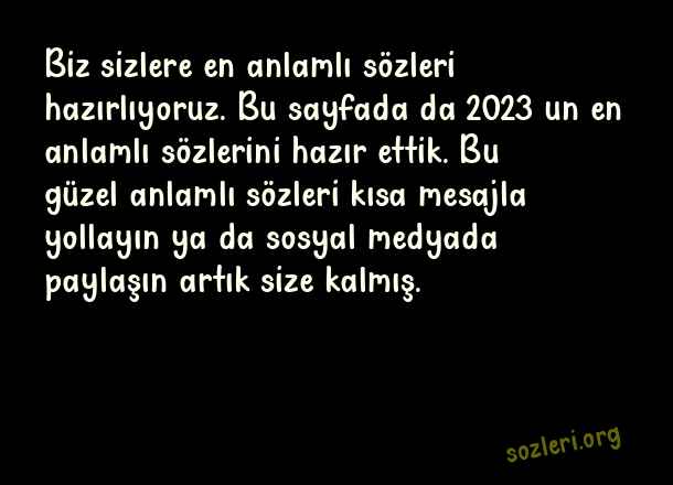 Biz sizlere en anlamlı sözleri hazırlıyoruz. Bu sayfada da 2023 un en anlamlı sözlerini hazır ettik. Bu güzel anlamlı sözleri kısa mesajla yollayın ya da sosyal medyada paylaşın artık size kalmış. ( Anlamlı Sözler 2023 )