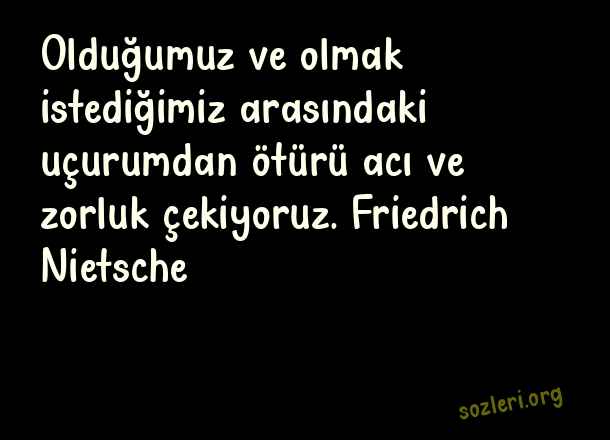 Olduğumuz ve olmak istediğimiz arasındaki uçurumdan ötürü acı ve zorluk çekiyoruz. Friedrich Nietsche ( Anlamlı Sözler 2023 )