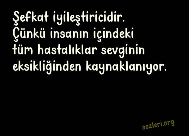 Şefkat iyileştiricidir. Çünkü insanın içindeki tüm hastalıklar sevginin eksikliğinden kaynaklanıyor. ( Anlamlı Sözler 2023 )