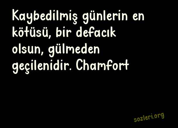 Kaybedilmiş günlerin en kötüsü, bir defacık olsun, gülmeden geçilenidir. Chamfort ( Anlamlı Ünlü Sözler )