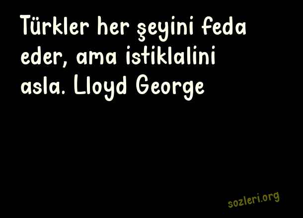 Türkler her şeyini feda eder, ama istiklalini asla. Lloyd George ( Anlamlı Ünlü Sözler )