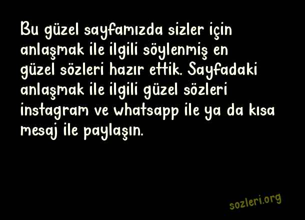 Bu güzel sayfamızda sizler için anlaşmak ile ilgili söylenmiş en güzel sözleri hazır ettik. Sayfadaki anlaşmak ile ilgili güzel sözleri instagram ve whatsapp ile ya da kısa mesaj ile paylaşın. ( Anlaşmak )