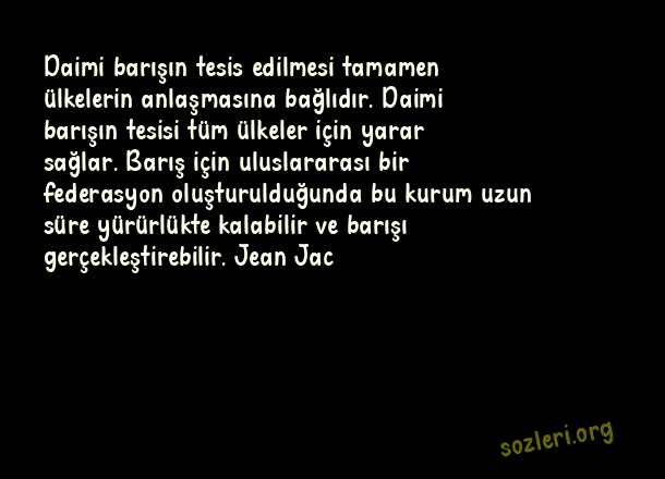 Daimi barışın tesis edilmesi tamamen ülkelerin anlaşmasına bağlıdır. Daimi barışın tesisi tüm ülkeler için yarar sağlar. Barış için uluslararası bir federasyon oluşturulduğunda bu kurum uzun süre yürürlükte kalabilir ve barışı gerçekleştirebilir. Jean Jac ( Anlaşmak )