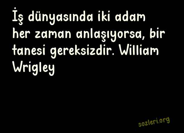 İş dünyasında iki - Anlaşmak İle İlgili Sözler .. İş dünyasında iki adam her zaman anlaşıyorsa, bir tanesi gereksizdir. William Wrigley ( Anlaşmak )