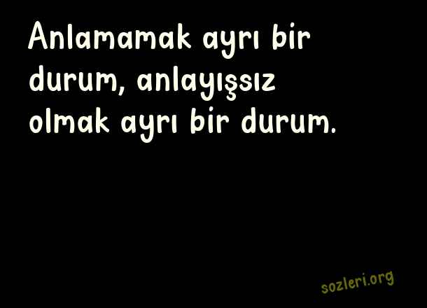 Anlamamak ayrı bir durum, anlayışsız olmak ayrı bir durum. ( Anlayışsız İnsanlara Sözler )