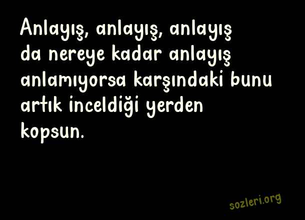 Anlayış, anlayış, anlayış da nereye kadar anlayış anlamıyorsa karşındaki bunu artık inceldiği yerden kopsun. ( Anlayışsız İnsanlara Sözler )