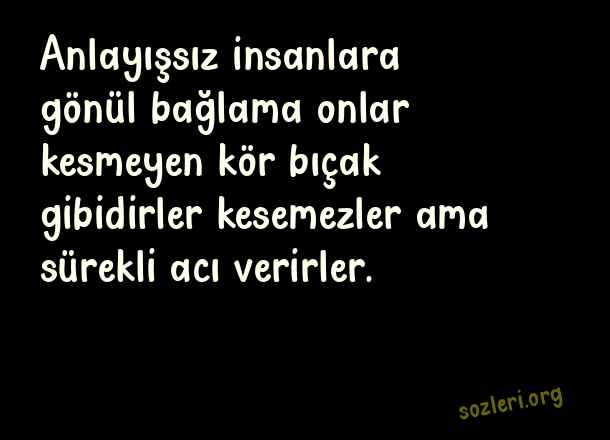 Anlayışsız insanlara gönül bağlama onlar kesmeyen kör bıçak gibidirler kesemezler ama sürekli acı verirler. ( Anlayışsız İnsanlara Sözler )