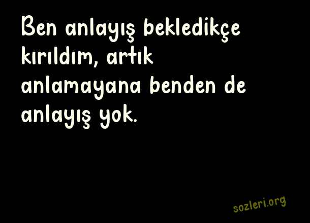 Ben anlayış bekledikçe kırıldım, artık anlamayana benden de anlayış yok. ( Anlayışsız İnsanlara Sözler )