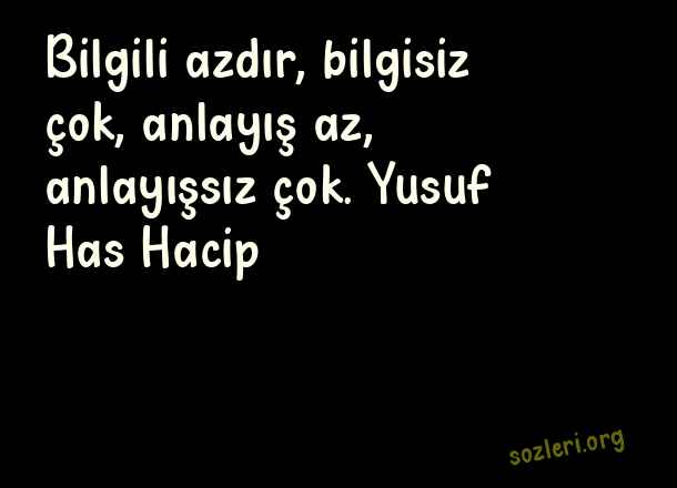 Bilgili azdır, bilgisiz çok, anlayış az, anlayışsız çok. Yusuf Has Hacip ( Anlayışsız İnsanlara Sözler )