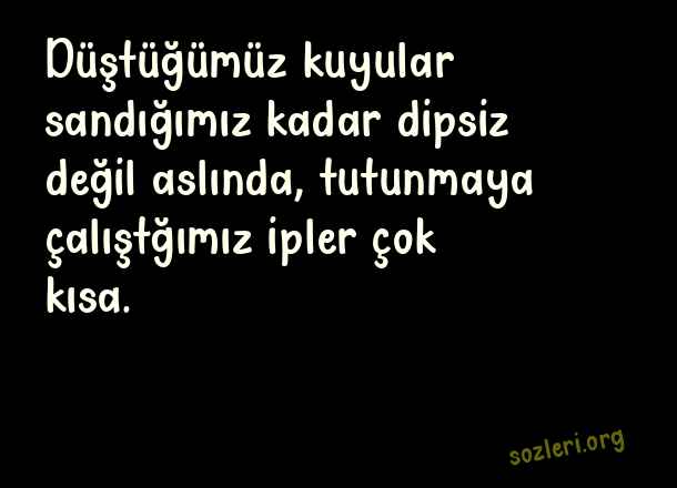 Düştüğümüz kuyular sandığımız kadar dipsiz değil aslında, tutunmaya çalıştğımız ipler çok kısa. ( Anlayışsız İnsanlara Sözler )
