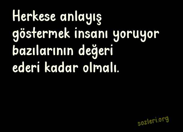 Herkese anlayış göstermek insanı yoruyor bazılarının değeri ederi kadar olmalı. ( Anlayışsız İnsanlara Sözler )
