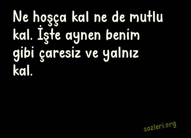 Ne hoşça kal ne de mutlu kal. İşte aynen benim gibi çaresiz ve yalnız kal. ( Anlayışsız İnsanlara Sözler )