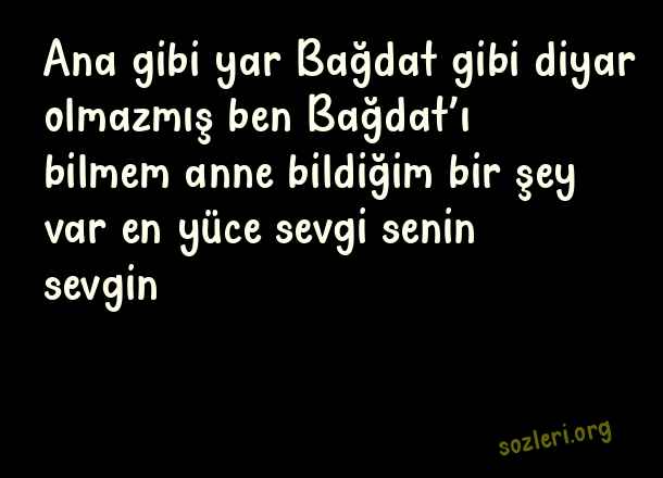 Ana gibi yar Bağdat gibi diyar olmazmış ben Bağdat’ı bilmem anne bildiğim bir şey var en yüce sevgi senin sevgin… ( Anne Sevgisi İle İlgili Güzel Sözler )