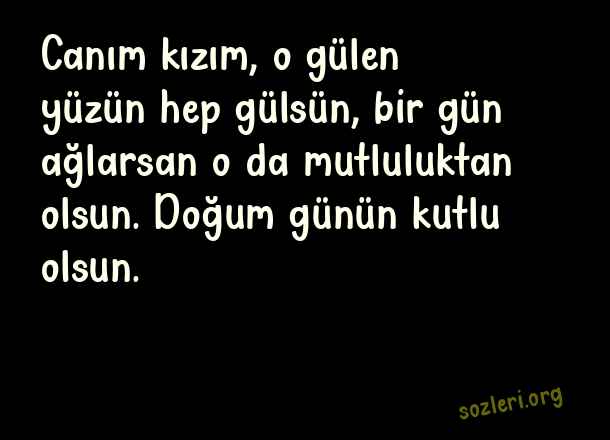 Canım kızım, o gülen yüzün hep gülsün, bir gün ağlarsan o da mutluluktan olsun. Doğum günün kutlu olsun. ( Anneden Kızına Doğum Günü )