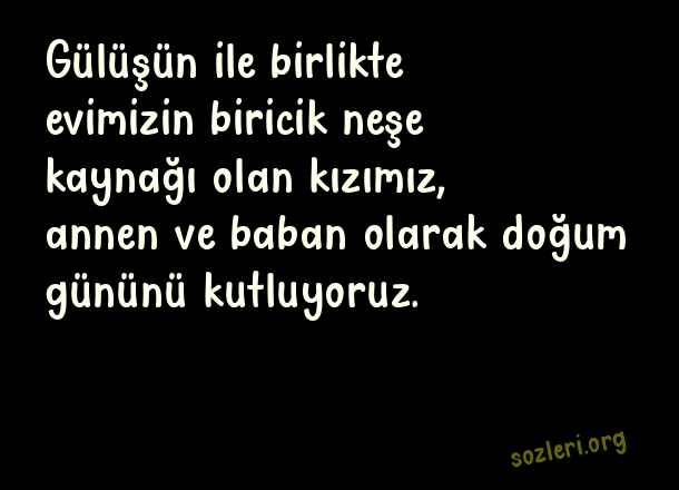 Gülüşün ile birlikte evimizin biricik neşe kaynağı olan kızımız, annen ve baban olarak doğum gününü kutluyoruz. ( Anneden Kızına Doğum Günü )