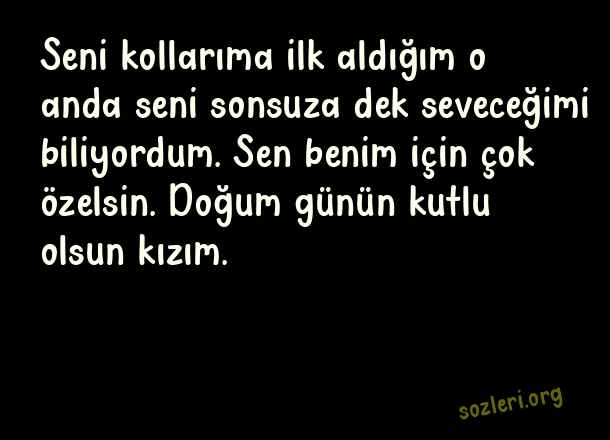 Seni kollarıma ilk aldığım o anda seni sonsuza dek seveceğimi biliyordum. Sen benim için çok özelsin. Doğum günün kutlu olsun kızım. ( Anneden Kızına Doğum Günü )