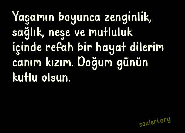 Yaşamın boyunca zenginlik, sağlık, neşe ve mutluluk içinde refah bir hayat dilerim canım kızım. Doğum günün kutlu olsun. ( Anneden Kızına Doğum Günü )