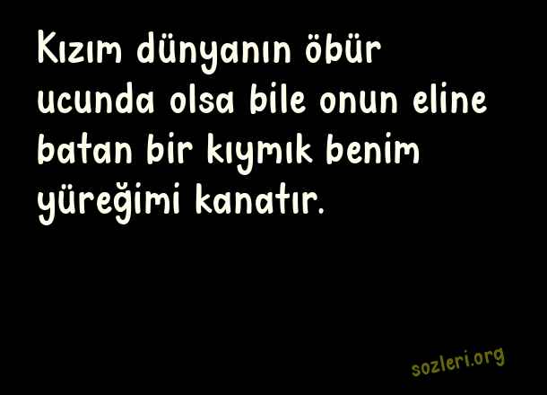 Kızım dünyanın öbür ucunda olsa bile onun eline batan bir kıymık benim yüreğimi kanatır. ( Anneden Kızına Güzel Sözler )