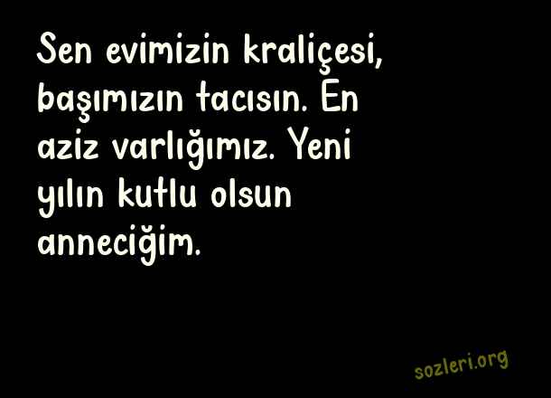 Sen evimizin kraliçesi, başımızın tacısın. En aziz varlığımız. Yeni yılın kutlu olsun anneciğim. ( Anneye Yeni Yıl )