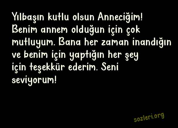 Yılbaşın kutlu olsun Anneciğim! Benim annem olduğun için çok mutluyum. Bana her zaman inandığın ve benim için yaptığın her şey için teşekkür ederim. Seni seviyorum! ( Anneye Yeni Yıl )