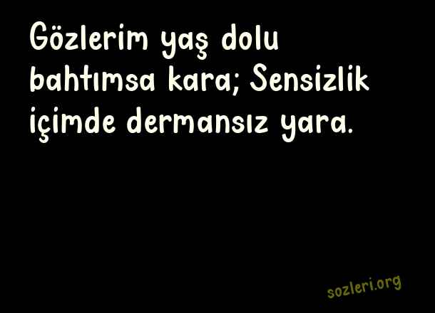 Gözlerim yaş dolu bahtımsa kara; Sensizlik içimde dermansız yara. ( Arabesk Aşk )