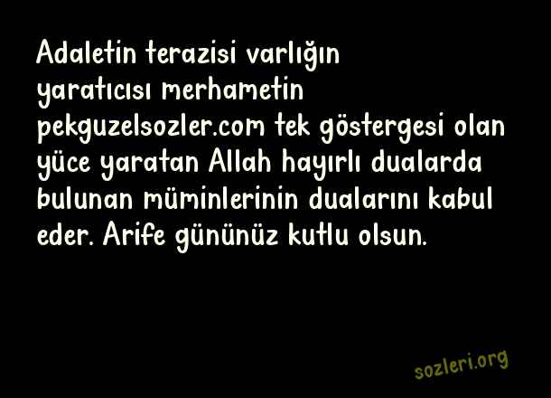 Adaletin terazisi varlığın yaratıcısı merhametin tek göstergesi olan yüce yaratan Allah hayırlı dualarda bulunan müminlerinin dualarını kabul eder. Arife gününüz kutlu olsun. ( Arife Günü )