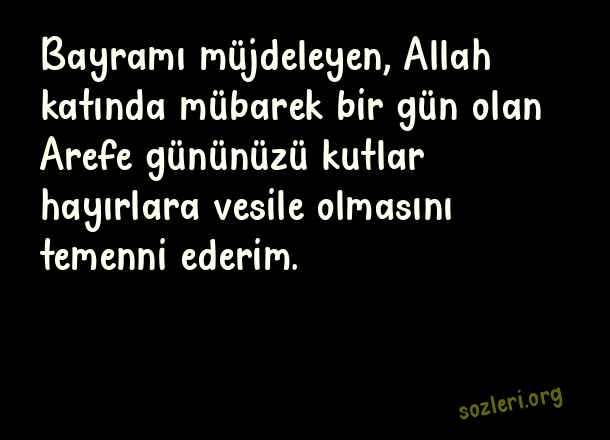 Bayramı müjdeleyen, Allah katında mübarek bir gün olan Arefe gününüzü kutlar hayırlara vesile olmasını temenni ederim. ( Arife Günü )