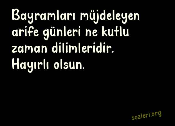 Bayramları müjdeleyen arife günleri ne kutlu zaman dilimleridir. Hayırlı olsun. ( Arife Günü )
