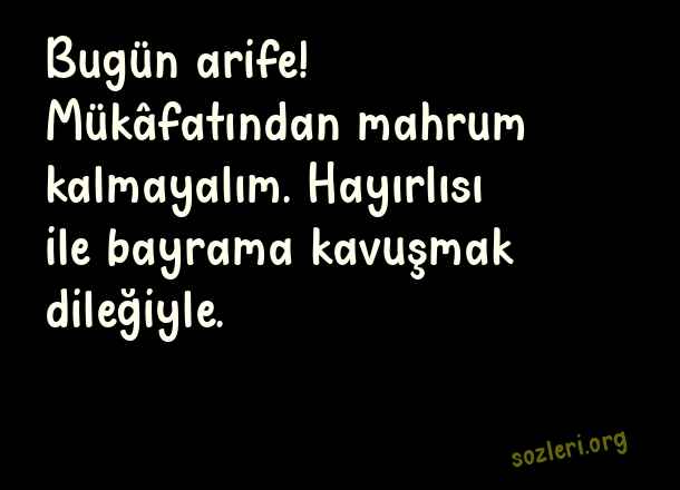 Bugün arife! Mükâfatından mahrum kalmayalım. Hayırlısı ile bayrama kavuşmak dileğiyle. ( Arife Günü )