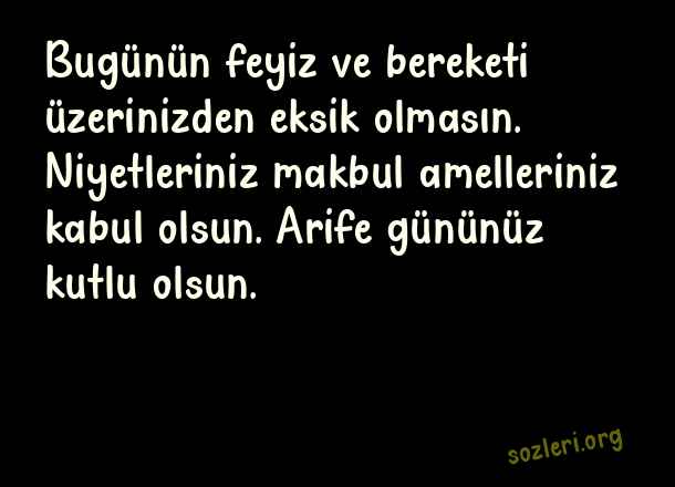 Bugünün feyiz ve bereketi üzerinizden eksik olmasın. Niyetleriniz makbul amelleriniz kabul olsun. Arife gününüz kutlu olsun. ( Arife Günü )