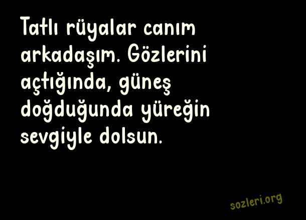 Tatlı rüyalar canım arkadaşım. Gözlerini açtığında, güneş doğduğunda yüreğin sevgiyle dolsun. ( Arkadaşa İyi Geceler )