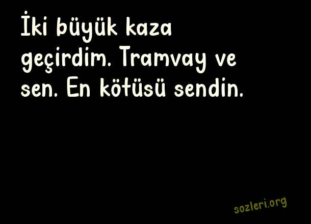 İki büyük kaza - Arkadaşa Laf Sokucu Sözler .. İki büyük kaza geçirdim. Tramvay ve sen. En kötüsü sendin. ( Arkadaşa Laf Sokucu Sözler )