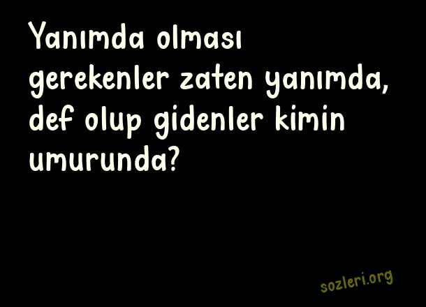 Yanımda olması gerekenler zaten yanımda, def olup gidenler kimin umurunda? ( Arkadaşa Laf Sokucu Sözler )