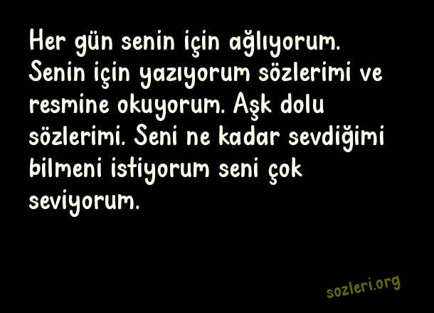Her gün senin için ağlıyorum. Senin için yazıyorum sözlerimi ve resmine okuyorum. Aşk dolu sözlerimi. Seni ne kadar sevdiğimi bilmeni istiyorum seni çok seviyorum. ( Aşk Dolu Mesajlar )