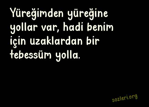 Yüreğimden yüreğine yollar var, hadi benim için uzaklardan bir tebessüm yolla. ( Aşk Dolu Mesajlar )
