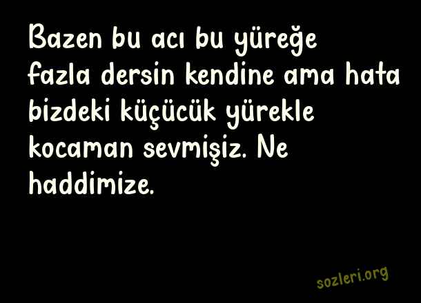 Bazen bu acı bu yüreğe fazla dersin kendine ama hata bizdeki küçücük yürekle kocaman sevmişiz. Ne haddimize. ( En Güzel Aşk Dolu Sözler 2023 )