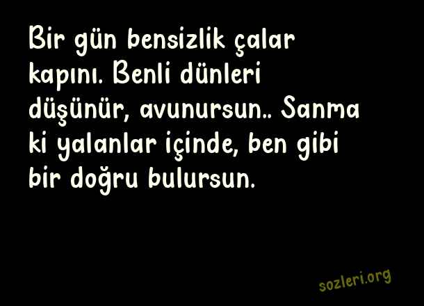 Bir gün bensizlik çalar kapını. Benli dünleri düşünür, avunursun.. Sanma ki yalanlar içinde, ben gibi bir doğru bulursun. ( En Güzel Aşk Dolu Sözler 2023 )