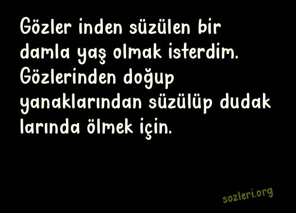 Gözler inden süzülen bir damla yaş olmak isterdim. Gözlerinden doğup yanaklarından süzülüp dudak larında ölmek için. ( Sevgiliye Aşk Dolu Sözler )